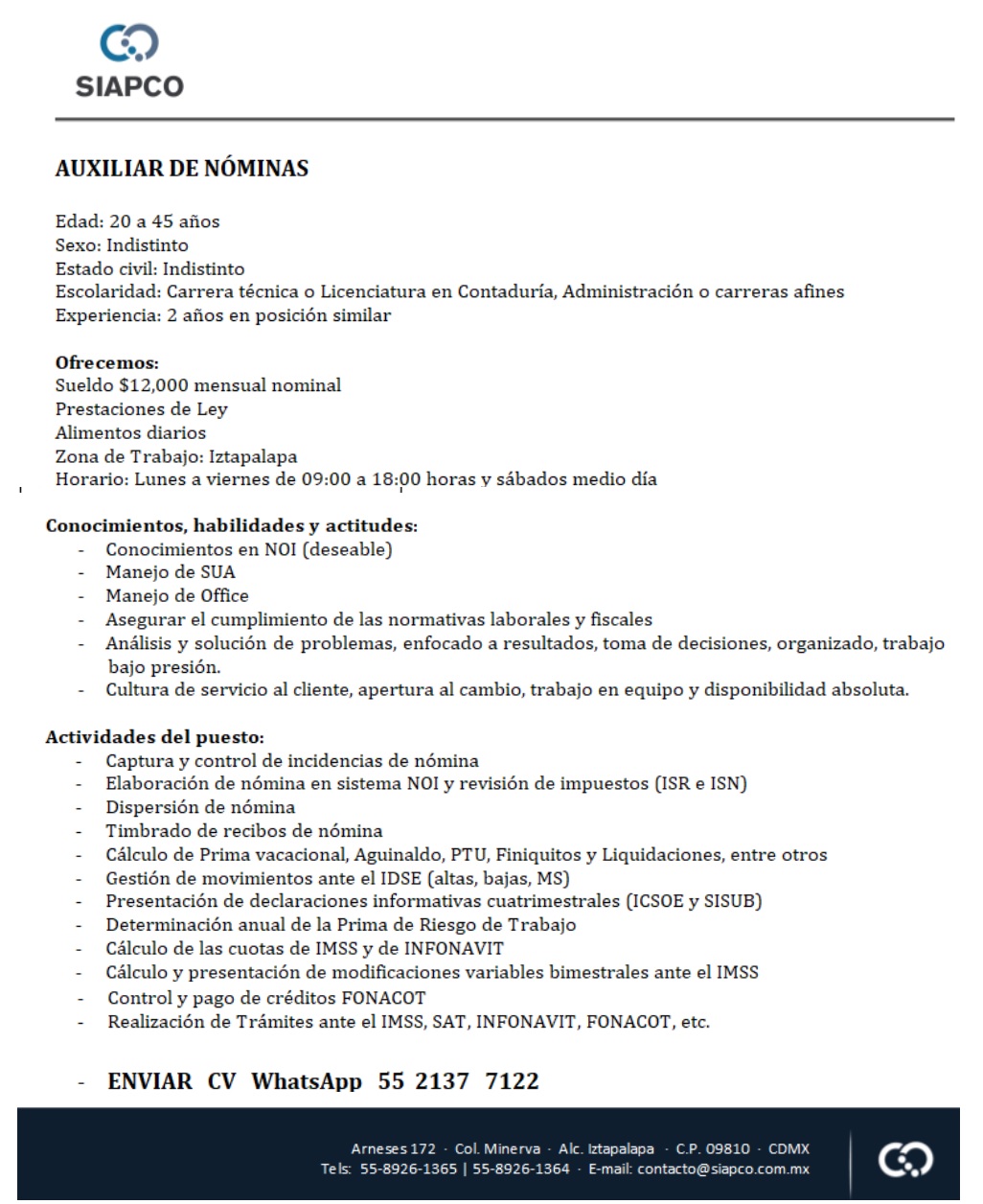 AUXILIAR DE NÓMINAS