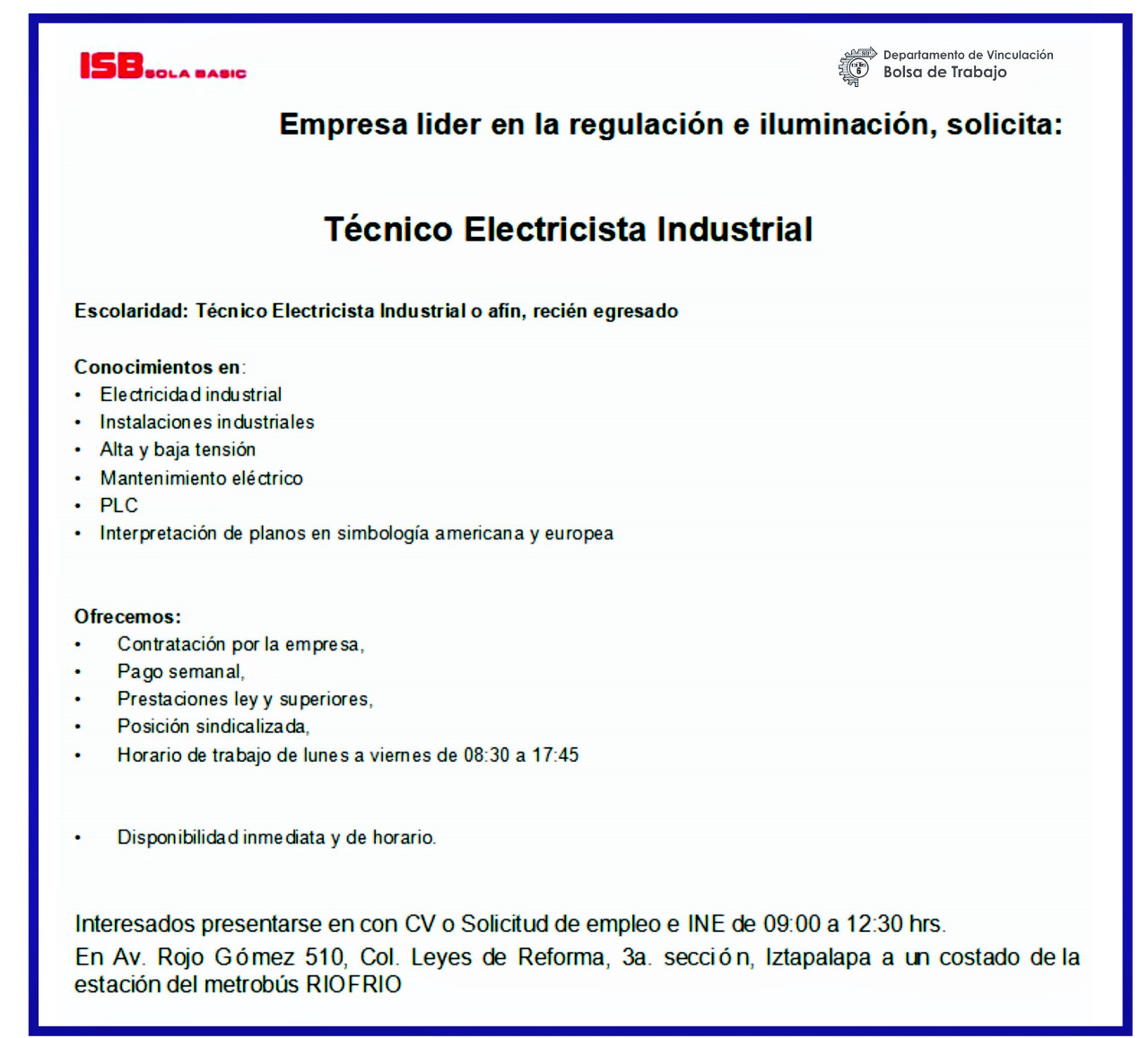 TÉCNICO ELECTRICISTA INDUSTRIAL